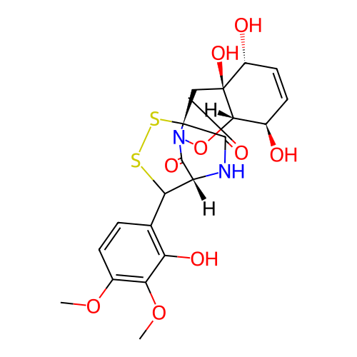 | SMILES | COC1=C(C(=C(C=C1)C2[C@@H]3C(=O)N4[C@@](C[C@@]5([C@@H](C=C[C@H]([C@@H]5O4)O)O)O)(C(=O)N3)SS2)O)OC |