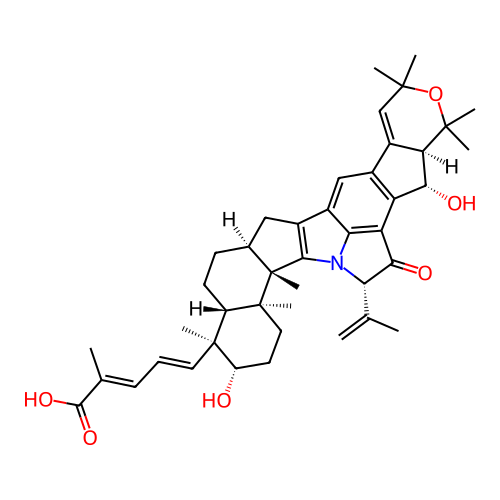| SMILES | CC(=C)[C@H]1C(=O)C2=C3N1C4=C(C3=CC5=C2[C@H]([C@H]6C5=CC(OC6(C)C)(C)C)O)C[C@H]7[C@]4([C@]8(CC[C@@H]([C@@]([C@@H]8CC7)(C)/C=C/C=C(\C)/C(=O)O)O)C)C |