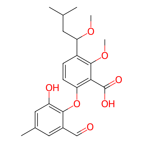 | InChI | InChI=1S/C22H26O7/c1-12(2)8-18(27-4)15-6-7-17(19(22(25)26)21(15)28-5)29-20-14(11-23)9-13(3)10-16(20)24/h6-7,9-12,18,24H,8H2,1-5H3,(H,25,26) |