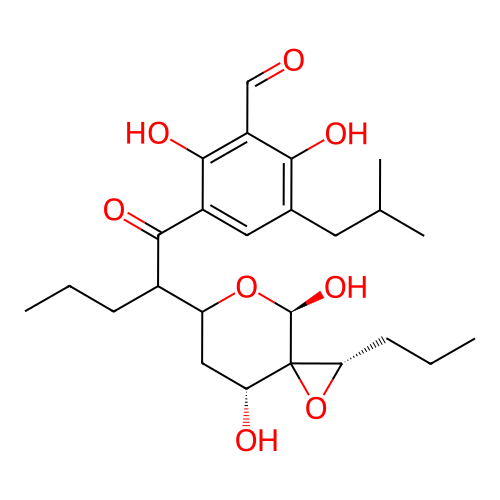 | SMILES | CCC[C@H]1C2(O1)[C@@H](CC(O[C@H]2O)C(CCC)C(=O)C3=CC(=C(C(=C3O)C=O)O)CC(C)C)O |
