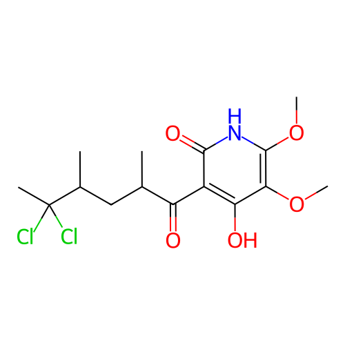 | SMILES | CC(CC(C)C(C)(Cl)Cl)C(=O)C1=C(C(=C(NC1=O)OC)OC)O |