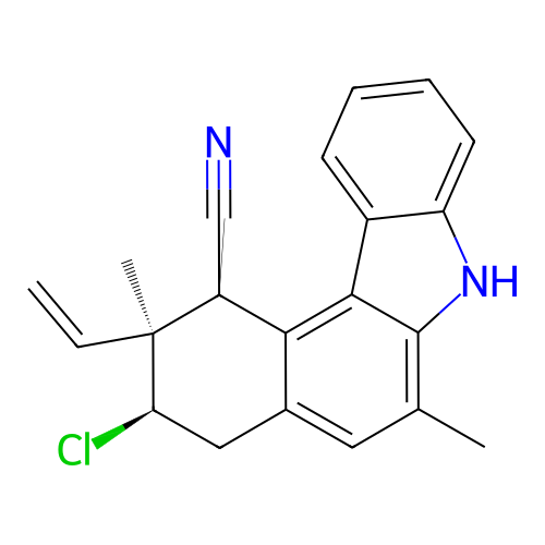 | SMILES | CC1=C2C(=C3[C@@H]([C@]([C@@H](CC3=C1)Cl)(C)C=C)C#N)C4=CC=CC=C4N2 |