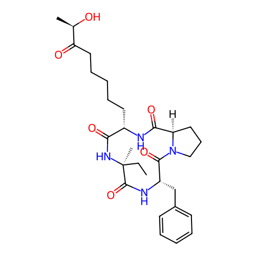 | SMILES | CC[C@]1(C)NC(=O)[C@H](CCCCCC(=O)[C@@H](C)O)NC(=O)[C@H]2CCCN2C(=O)[C@H](CC2=CC=CC=C2)NC1=O |