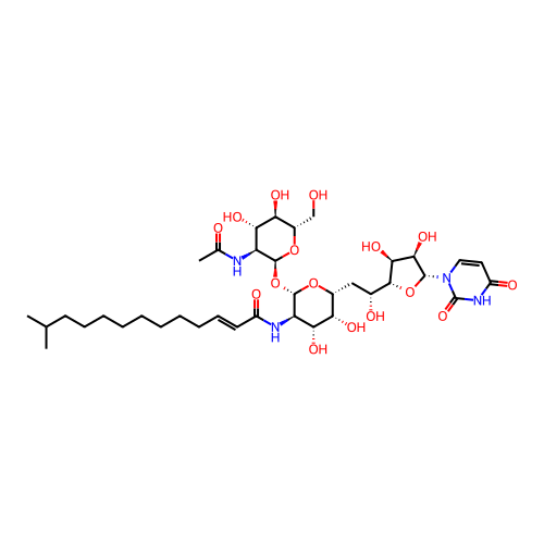 | SMILES | CC(C)CCCCCCCC/C=C/C(=O)N[C@@H]1[C@H]([C@H]([C@H](O[C@H]1O[C@H]2[C@H]([C@@H]([C@H]([C@@H](O2)CO)O)O)NC(=O)C)C[C@H]([C@@H]3[C@H]([C@H]([C@@H](O3)N4C=CC(=O)NC4=O)O)O)O)O)O |