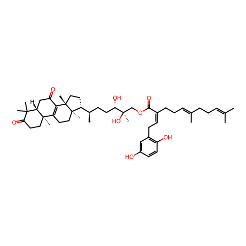 | SMILES | C[C@H](CC[C@@H]([C@@](C)(COC(=O)/C(=C\CC1=C(C=CC(=C1)O)O)/CC/C=C(\C)/CCC=C(C)C)O)O)[C@H]2CC[C@@]3([C@@]2(CCC4=C3C(=O)C[C@@H]5[C@@]4(CCC(=O)C5(C)C)C)C)C |