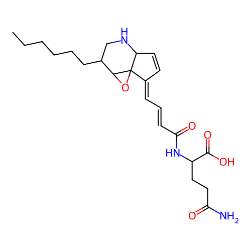 | SMILES | CCCCCCC1CNC2C=C/C(=C\C=C\C(=O)NC(CCC(=O)N)C(=O)O)/C23C1O3 |