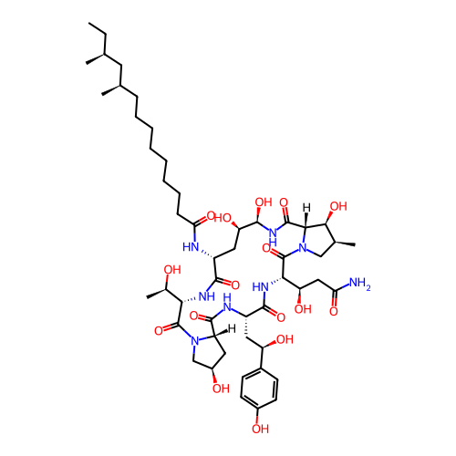 | SMILES | CC[C@H](C)C[C@H](C)CCCCCCCCC(=O)N[C@@H]1C[C@H]([C@H](NC(=O)[C@@H]2[C@H]([C@H](CN2C(=O)[C@@H](NC(=O)[C@@H](NC(=O)[C@@H]3C[C@H](CN3C(=O)[C@@H](NC1=O)[C@@H](C)O)O)C[C@H](C4=CC=C(C=C4)O)O)[C@@H](CC(=O)N)O)C)O)O)O |
