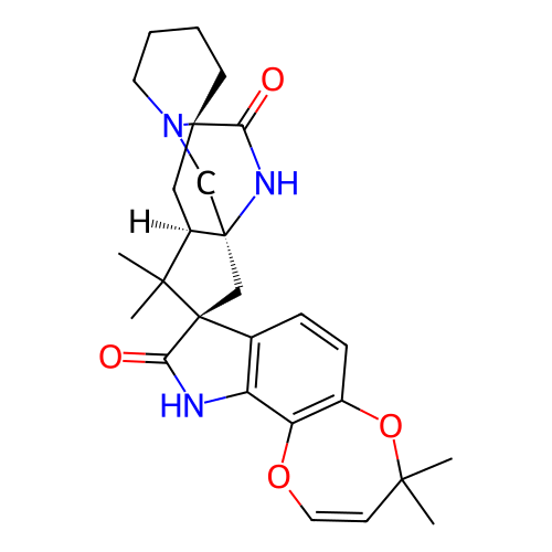 | SMILES | CC1(C=COC2=C(O1)C=CC3=C2NC(=O)[C@@]34C[C@@]56CN7CCCC[C@]7(C[C@@H]5C4(C)C)C(=O)N6)C |