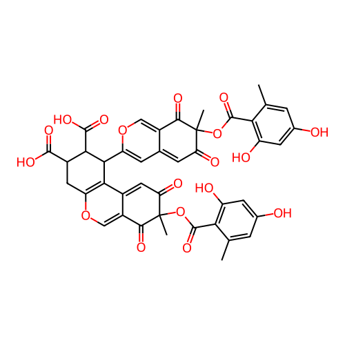 | InChI | InChI=1S/C42H32O18/c1-15-5-18(43)9-24(45)30(15)39(55)59-41(3)28(47)8-17-7-26(57-13-22(17)35(41)49)34-32-20-12-29(48)42(4,60-40(56)31-16(2)6-19(44)10-25(31)46)36(50)23(20)14-58-27(32)11-21(37(51)52)33(34)38(53)54/h5-10,12-14,21,33-34,43-46H,11H2,1-4H3,(H,51,52)(H,53,54) |