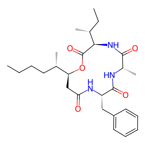 | SMILES | CCCC[C@H](C)[C@@H]1CC(=O)N[C@H](C(=O)N[C@H](C(=O)N[C@@H](C(=O)O1)[C@H](C)CC)C)CC2=CC=CC=C2 |