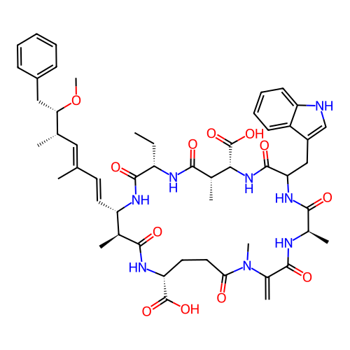 | SMILES | CC[C@H]1C(=O)N[C@H]([C@@H](C(=O)N[C@H](CCC(=O)N(C(=C)C(=O)N[C@@H](C(=O)NC(C(=O)N[C@H]([C@@H](C(=O)N1)C)C(=O)O)CC2=CNC3=CC=CC=C32)C)C)C(=O)O)C)/C=C/C(=C/[C@H](C)[C@H](CC4=CC=CC=C4)OC)/C |