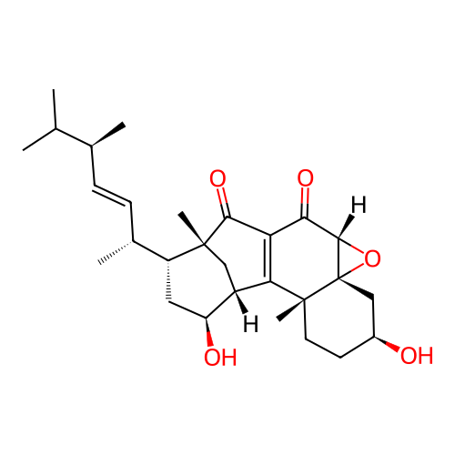 | InChI | InChI=1S/C28H40O5/c1-14(2)15(3)7-8-16(4)19-11-20(30)18-13-26(19,5)24(32)21-22(18)27(6)10-9-17(29)12-28(27)25(33-28)23(21)31/h7-8,14-20,25,29-30H,9-13H2,1-6H3/b8-7+/t15-,16+,17-,18-,19+,20-,25-,26+,27+,28-/m0/s1 |