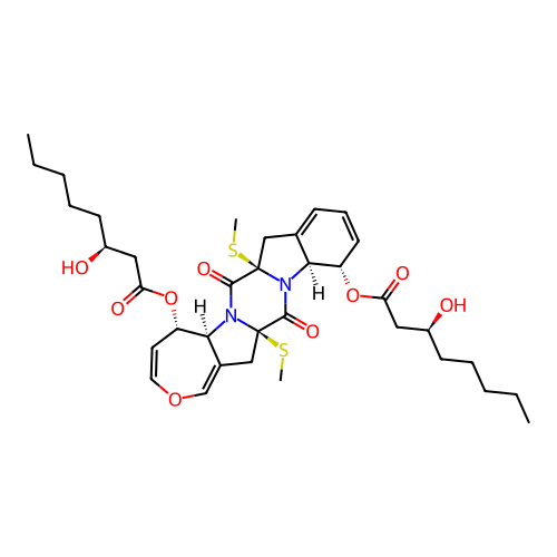 | SMILES | CCCCC[C@@H](CC(=O)O[C@H]1C=CC=C2[C@@H]1N3C(=O)[C@@]4(CC5=COC=C[C@@H]([C@H]5N4C(=O)[C@@]3(C2)SC)OC(=O)C[C@H](CCCCC)O)SC)O |