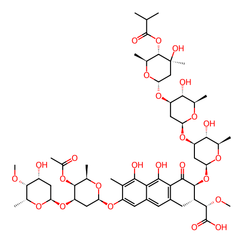 | SMILES | C[C@@H]1[C@H]([C@@H](C[C@@H](O1)O[C@H]2[C@@H](CC3=C(C2=O)C(=C4C(=C3)C=C(C(=C4O)C)O[C@H]5C[C@H]([C@H]([C@H](O5)C)OC(=O)C)O[C@@H]6C[C@H]([C@H]([C@H](O6)C)OC)O)O)[C@@H](C(=O)O)OC)O[C@H]7C[C@H]([C@@H]([C@H](O7)C)O)O[C@H]8C[C@]([C@H]([C@@H](O8)C)OC(=O)C(C)C)(C)O)O |
