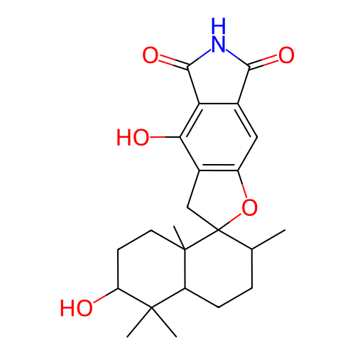 | SMILES | CC1CCC2C(C(CCC2(C13CC4=C(O3)C=C5C(=C4O)C(=O)NC5=O)C)O)(C)C |