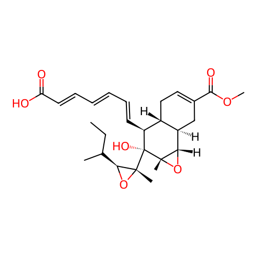 | SMILES | CCC(C)[C@H]1[C@](O1)(C)[C@]2([C@H]([C@@H]3CC=C(C[C@H]3[C@H]4[C@@]2(O4)C)C(=O)OC)/C=C/C=C/C=C/C(=O)O)O |