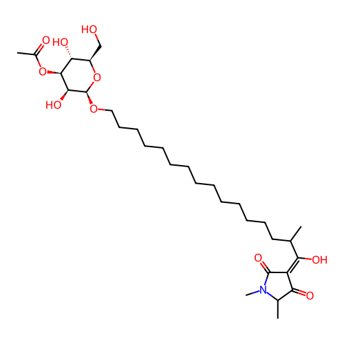 | SMILES | CC1C(=O)C(=C(C(C)CCCCCCCCCCCCCCO[C@H]2[C@H]([C@H]([C@@H]([C@H](O2)CO)O)OC(=O)C)O)O)C(=O)N1C |