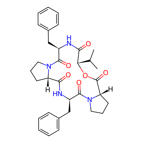 | SMILES | CC(C)[C@H]1C(=O)N[C@@H](C(=O)N2CCC[C@H]2C(=O)N[C@@H](C(=O)N3CCC[C@H]3C(=O)O1)CC4=CC=CC=C4)CC5=CC=CC=C5 |