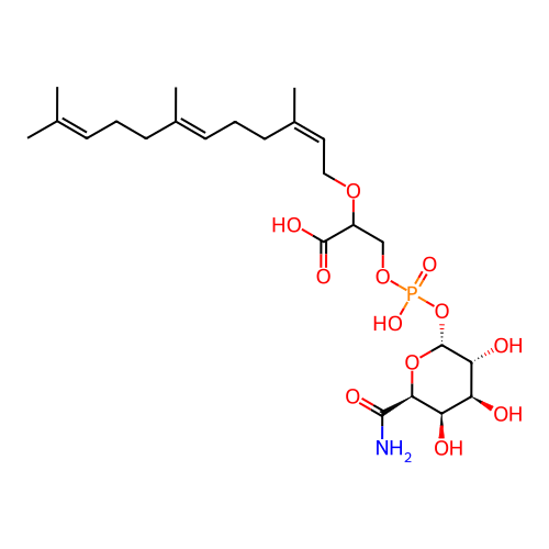 | SMILES | CC(=CCC/C(=C/CC/C(=C\COC(COP(=O)(O)O[C@@H]1[C@@H]([C@H]([C@H]([C@H](O1)C(=O)N)O)O)O)C(=O)O)/C)/C)C |