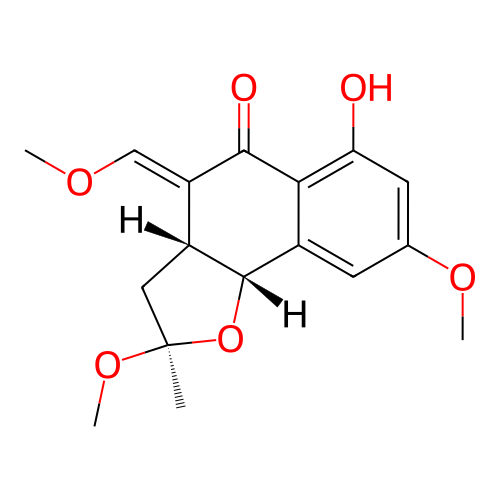 | InChI | InChI=1S/C17H20O6/c1-17(22-4)7-11-12(8-20-2)15(19)14-10(16(11)23-17)5-9(21-3)6-13(14)18/h5-6,8,11,16,18H,7H2,1-4H3/b12-8+/t11-,16+,17-/m1/s1 |