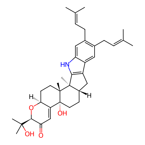 | InChI | InChI=1S/C37H49NO4/c1-21(2)9-11-23-17-26-27-19-25-13-16-37(41)28-20-30(39)33(34(5,6)40)42-31(28)14-15-35(37,7)36(25,8)32(27)38-29(26)18-24(23)12-10-22(3)4/h9-10,17-18,20,25,31,33,38,40-41H,11-16,19H2,1-8H3/t25-,31-,33-,35+,36+,37+/m0/s1 |
