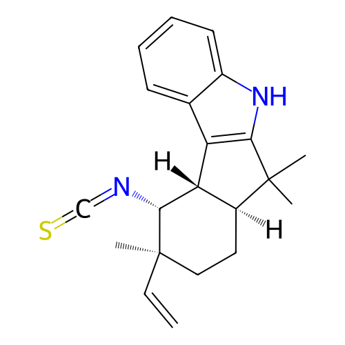 | SMILES | C[C@]1(CC[C@H]2[C@H]([C@H]1N=C=S)C3=C(C2(C)C)NC4=CC=CC=C43)C=C |