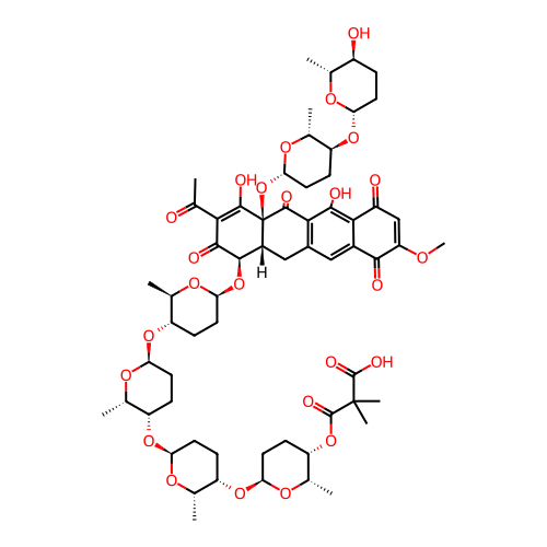| SMILES | C[C@@H]1[C@H](CC[C@@H](O1)O[C@H]2CC[C@@H](O[C@@H]2C)O[C@]34[C@H](CC5=C(C3=O)C(=C6C(=C5)C(=O)C(=CC6=O)OC)O)[C@H](C(=O)C(=C4O)C(=O)C)O[C@H]7CC[C@@H]([C@H](O7)C)O[C@H]8CC[C@@H]([C@@H](O8)C)O[C@H]9CC[C@@H]([C@@H](O9)C)O[C@H]1CC[C@@H]([C@@H](O1)C)OC(=O)C(C)(C)C(=O)O)O |