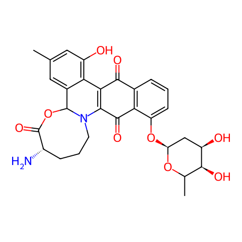 | SMILES | CC1=CC(O)=C2C3=C(C(=O)C4=C(C=CC=C4O[C@H]4C[C@@H](O)[C@@H](O)C(C)O4)C3=O)N3CCC[C@H](N)C(=O)OC3C2=C1 |