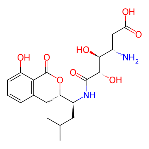 | SMILES | CC(C)C[C@@H]([C@@H]1CC2=C(C(=CC=C2)O)C(=O)O1)NC(=O)[C@H]([C@H]([C@H](CC(=O)O)N)O)O |