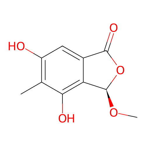 | InChI | InChI=1S/C10H10O5/c1-4-6(11)3-5-7(8(4)12)10(14-2)15-9(5)13/h3,10-12H,1-2H3/t10-/m1/s1 |