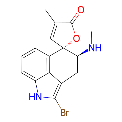 | SMILES | CC1=C[C@]2([C@H](CC3=C(NC4=CC=CC2=C34)Br)NC)OC1=O |