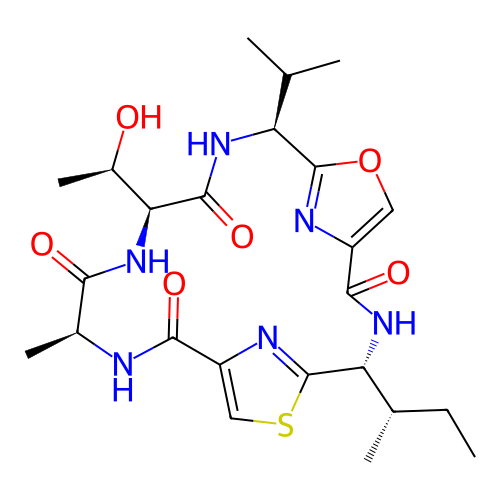 | SMILES | CC[C@H](C)[C@@H]1C2=NC(=CS2)C(=O)N[C@H](C(=O)N[C@H](C(=O)N[C@H](C3=NC(=CO3)C(=O)N1)C(C)C)[C@@H](C)O)C |
