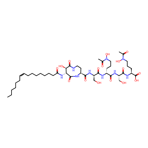 | SMILES | CCCCCC/C=C\CCCCCCCC(=O)N[C@@H]1[C@H](C(=O)NCC[C@H](NC1=O)C(=O)N[C@H](CO)C(=O)N[C@H](CCCN(C(=O)C)O)C(=O)N[C@@H](CO)C(=O)N[C@@H](CCCN(C(=O)C)O)C(=O)O)O |