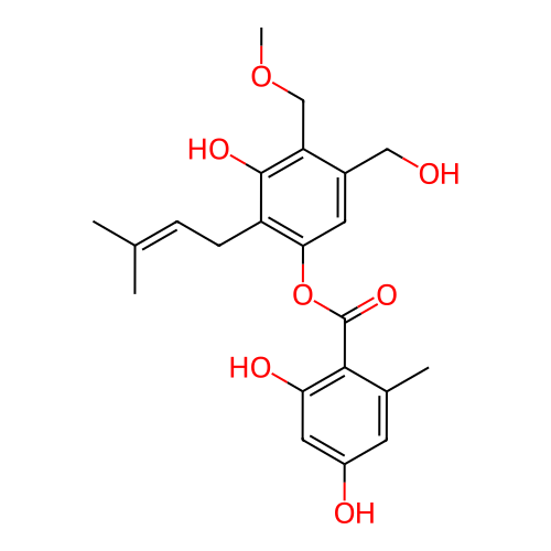 | SMILES | CC1=CC(=CC(=C1C(=O)OC2=C(C(=C(C(=C2)CO)COC)O)CC=C(C)C)O)O |