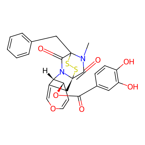 | SMILES | CN1C(=O)[C@]23CC4=COC=C[C@@H]([C@H]4N2C(=O)C1(SS3)CC5=CC=CC=C5)OC(=O)C6=CC(=C(C=C6)O)O |