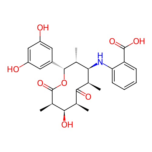 | SMILES | C[C@@H]1[C@H]([C@H](C(=O)[C@H]([C@H]([C@H](C(=O)O[C@@H]1C2=CC(=CC(=C2)O)O)C)O)C)C)NC3=CC=CC=C3C(=O)O |