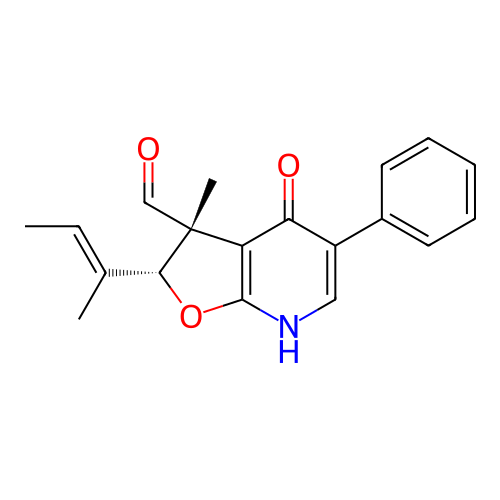 | InChI | InChI=1S/C19H19NO3/c1-4-12(2)17-19(3,11-21)15-16(22)14(10-20-18(15)23-17)13-8-6-5-7-9-13/h4-11,17H,1-3H3,(H,20,22)/b12-4+/t17-,19-/m1/s1 |