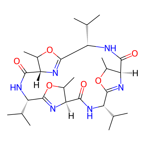 | SMILES | CC1[C@H]2C(=O)N[C@H](C3=N[C@@H](C(O3)C)C(=O)N[C@H](C4=N[C@@H](C(O4)C)C(=O)N[C@H](C(=N2)O1)C(C)C)C(C)C)C(C)C |