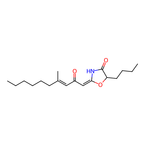 | SMILES | CCCCCC/C(=C/C(=O)/C=C/1\NC(=O)C(O1)CCCC)/C |