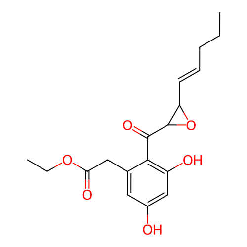 | InChI | InChI=1S/C18H22O6/c1-3-5-6-7-14-18(24-14)17(22)16-11(9-15(21)23-4-2)8-12(19)10-13(16)20/h6-8,10,14,18-20H,3-5,9H2,1-2H3/b7-6+ |