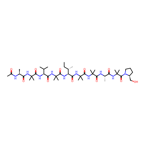 | SMILES | CC[C@H](C)[C@@H](C(=O)NC(C)(C)C(=O)NC(C)(C)C(=O)N[C@@H](C)C(=O)NC(C)(C)C(=O)N1CCC[C@H]1CO)NC(=O)C(C)(C)NC(=O)[C@H](C(C)C)NC(=O)C(C)(C)NC(=O)[C@H](C)NC(=O)C |