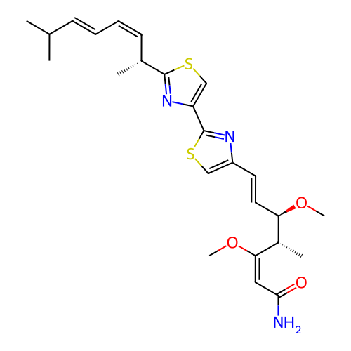 | SMILES | C[C@H](/C=C\C=C\C(C)C)C1=NC(=CS1)C2=NC(=CS2)/C=C/[C@H]([C@H](C)/C(=C\C(=O)N)/OC)OC |