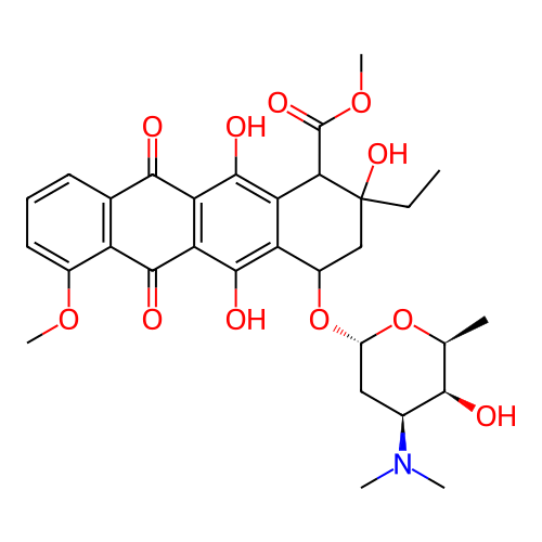 | SMILES | CCC1(CC(C2=C(C3=C(C(=C2C1C(=O)OC)O)C(=O)C4=C(C3=O)C(=CC=C4)OC)O)O[C@H]5C[C@@H]([C@@H]([C@@H](O5)C)O)N(C)C)O |
