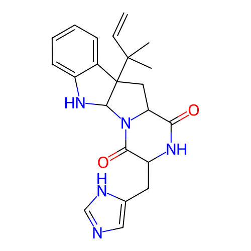 | SMILES | CC(C)(C=C)C12CC3C(=O)NC(C(=O)N3C1NC4=CC=CC=C24)CC5=CN=CN5 |