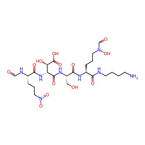 | SMILES | C(CCNC(=O)[C@H](CCCN(C=O)O)NC(=O)[C@H](CO)NC(=O)[C@@H]([C@H](C(=O)O)O)NC(=O)[C@H](CCC[N+](=O)[O-])NC=O)CN |
