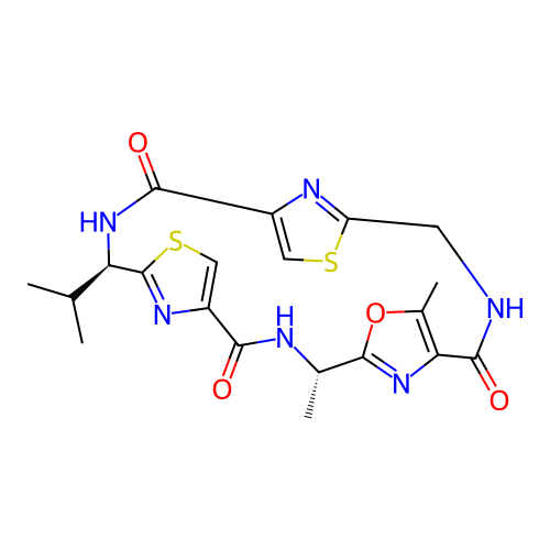 | SMILES | C[C@H]1C2=NC(=C(O2)C)C(=O)NCC3=NC(=CS3)C(=O)N[C@@H](C4=NC(=CS4)C(=O)N1)C(C)C |