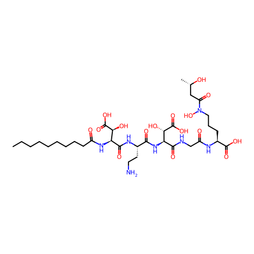 | SMILES | CCCCCCCCCC(=O)N[C@@H]([C@@H](C(=O)O)O)C(=O)N[C@@H](CCN)C(=O)N[C@@H]([C@@H](C(=O)O)O)C(=O)NCC(=O)N[C@@H](CCCN(C(=O)C[C@H](C)O)O)C(=O)O |