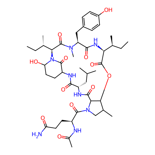 | SMILES | CC[C@H](C)[C@H]1C(=O)OC2C(CN(C2C(=O)N[C@H](C(=O)NC3CCC(N(C3=O)[C@H](C(=O)N([C@H](C(=O)N1)CC4=CC=C(C=C4)O)C)[C@@H](C)CC)O)CC(C)C)C(=O)[C@H](CCC(=O)N)NC(=O)C)C |