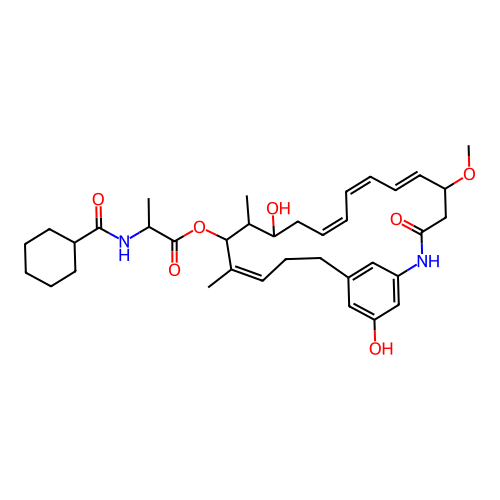 | InChI | InChI=1S/C36H50N2O7/c1-24-14-13-15-27-20-29(22-30(39)21-27)38-33(41)23-31(44-4)18-11-6-5-7-12-19-32(40)25(2)34(24)45-36(43)26(3)37-35(42)28-16-9-8-10-17-28/h5-7,11-12,14,18,20-22,25-26,28,31-32,34,39-40H,8-10,13,15-17,19,23H2,1-4H3,(H,37,42)(H,38,41)/b6-5-,12-7-,18-11?,24-14- |