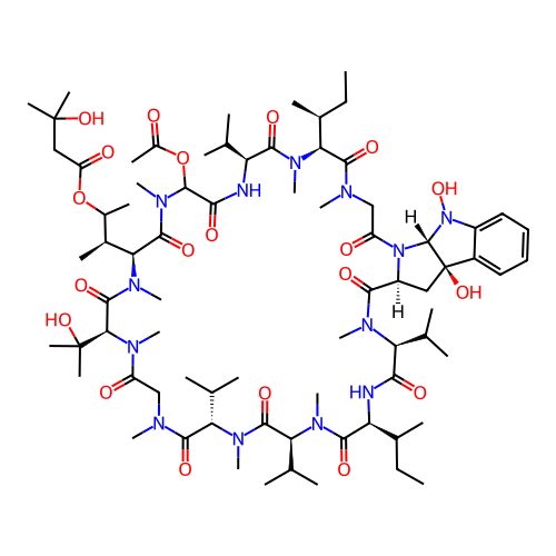 | SMILES | CC[C@H](C)[C@H]1C(=O)N(CC(=O)N2[C@@H](C[C@@]3([C@H]2N(C4=CC=CC=C43)O)O)C(=O)N([C@H](C(=O)N[C@H](C(=O)N([C@H](C(=O)N([C@H](C(=O)N(CC(=O)N([C@H](C(=O)N([C@H](C(=O)N(C(C(=O)N[C@H](C(=O)N1C)C(C)C)OC(=O)C)C)[C@@H](C)C(C)OC(=O)CC(C)(C)O)C)C(C)(C)O)C)C)C(C)C)C)C(C)C)C)C(C)CC)C(C)C)C)C |